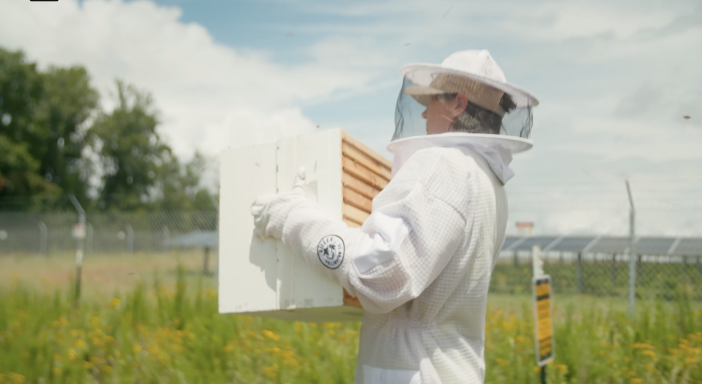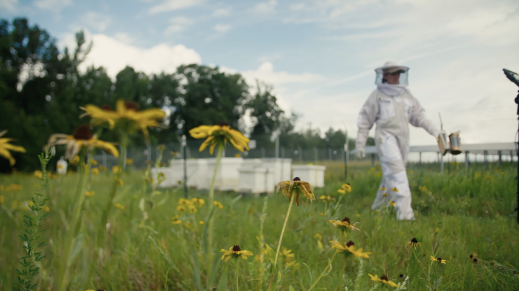 Fuzz and Buzz tells the story of the partnership between sheep and bees at an agrivoltaic site in Virginia, where Gray’s LAMBscaping and Siller Pollinator Company work together to create the best possible agricultural landscape. The lands around the solar array provide opportunities for forage, habitat, and farmland, while the sheep and bees strengthen the local ecosystem, manage vegetation, and produce lamb and honey. Over 70% of US honey and lamb are imported, creating a huge opportunity for rural Americans to produce more homegrown agricultural products. It's a truly sweet deal!